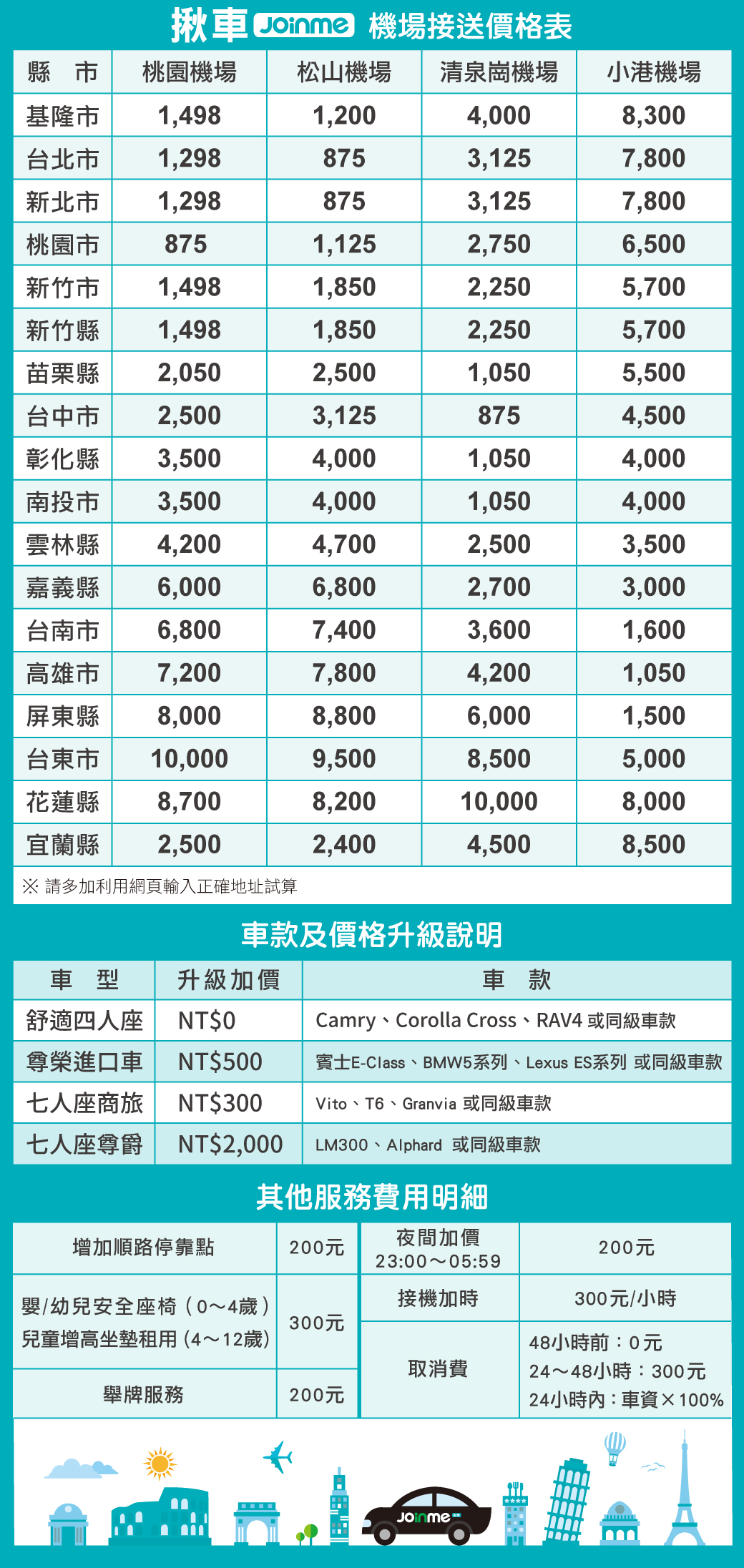 【揪車價格表】機場接送