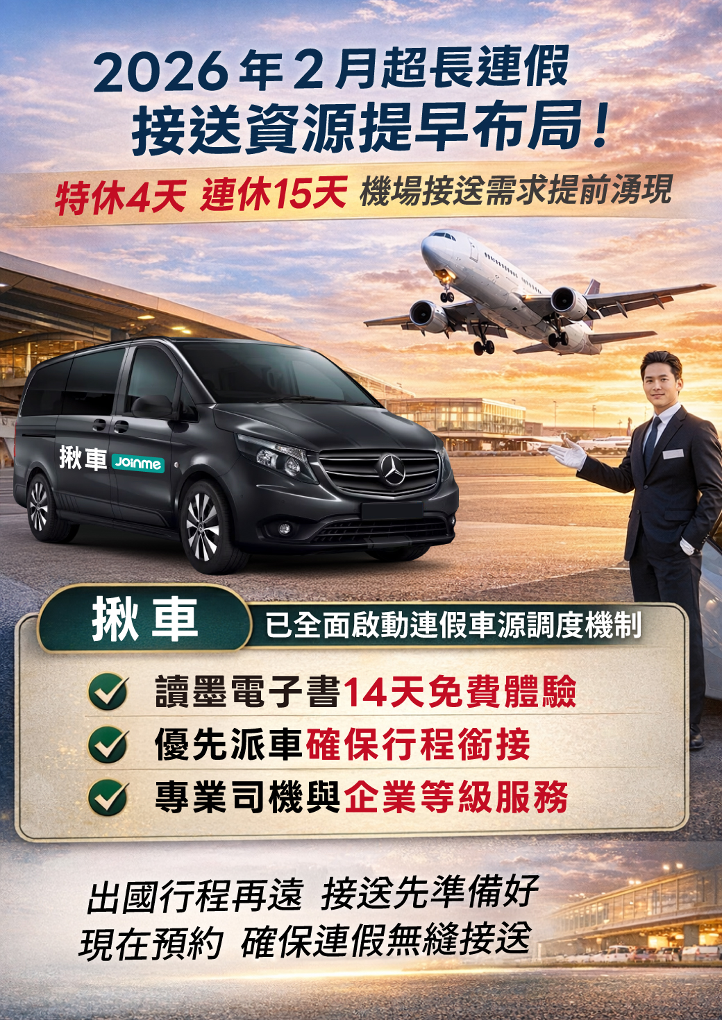 特休 4 天,連休 15 天,機場接送需求提前湧現。